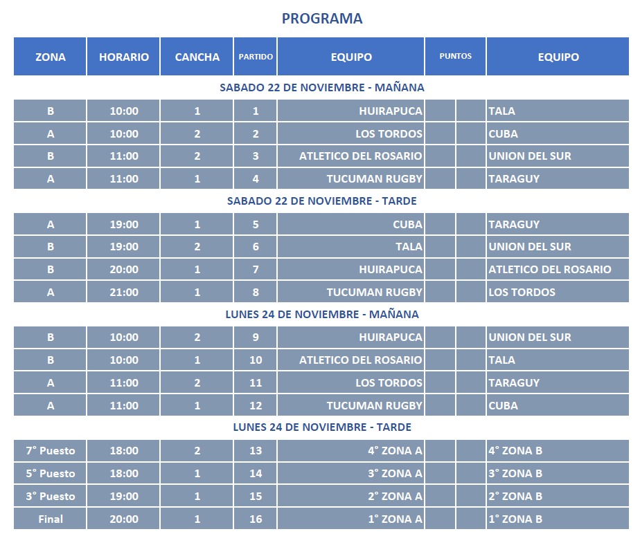 Este año jugarán, por Tucumán, el anfitrión y Huirapuca de Concepción. Y llegarán de visita, Los Tordos de Mendoza, Taraguy de Corrientes, Unión del Sur, Atlético del Rosario, CUBA y Tala.